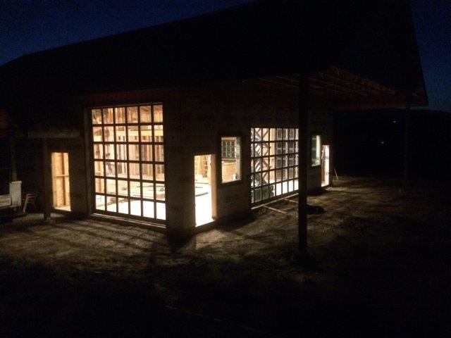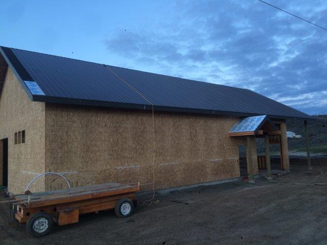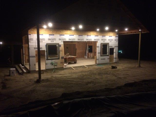12.1.2015 - The first wall is up and we are glad the forklift worked because there is no way three guys could stand up that wall.