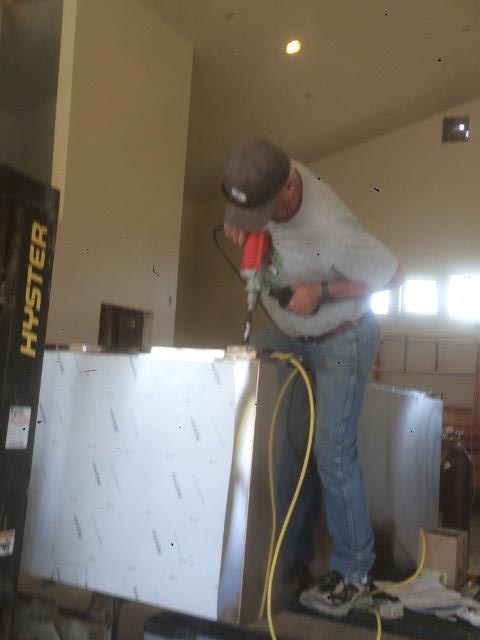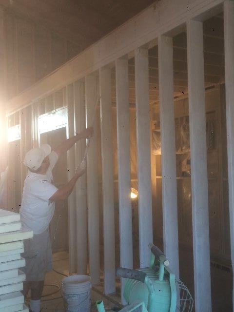8.24.2016 - Spraying a moisture barrier on the cold room before we put insulation in.