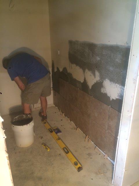 9.17.2016 - Dale and Thad are starting the tile work in the bathrooms. Pays to have hard working friends!!!